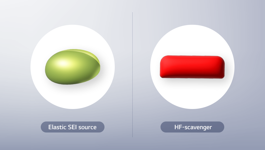 HF-scavenger neutralizes hydrofluoric acid (HF) generated through chemical reactions, thereby preventing damage to internal battery components. Meanwhile, Elastic SEI serves to stabilize the solid electrolyte interphase (SEI) layer by protecting newly formed surfaces that result from the volume expansion of silicon anodes. These types of additives help suppress resistance even at temperatures around 60℃ and, over time, demonstrate lower resistance compared to conventional electrolytes—ultimately contributing to enhanced battery safety and performance.